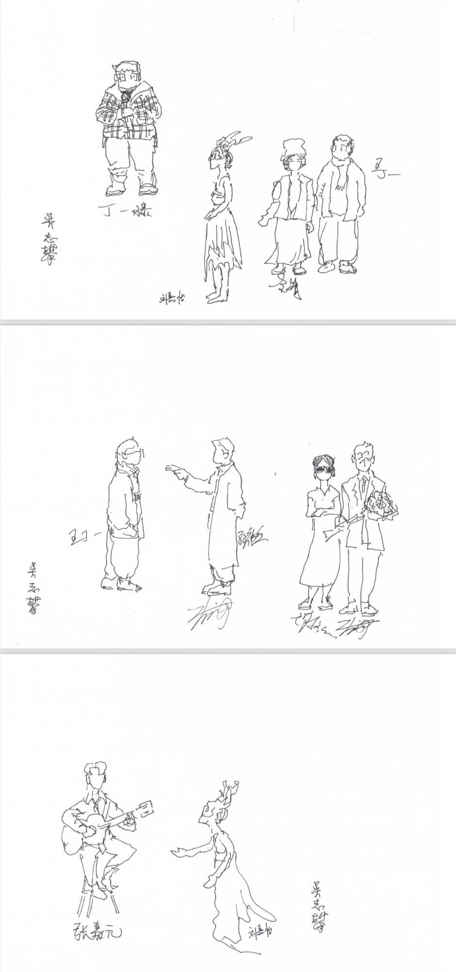 北京大学原常务副校长吴志攀为舞台剧《看不见的客人》演出所画速写