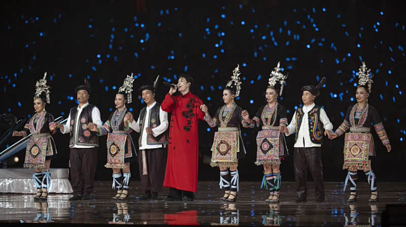 整场演出以“美猴王闹天宫”为主题,打造出“画卷天宫”的视觉概念,在传承经典的同时赋予传统文化新的时代内涵。音乐编排上,演出突破了传统音乐与现代流行音乐的界限,陕北说书的叙事性与电子乐节奏巧妙结合,侗族大歌的多声部合唱融入国际化编曲,唢呐、二胡等传统乐器的运用成为旋律中的鲜明标识。