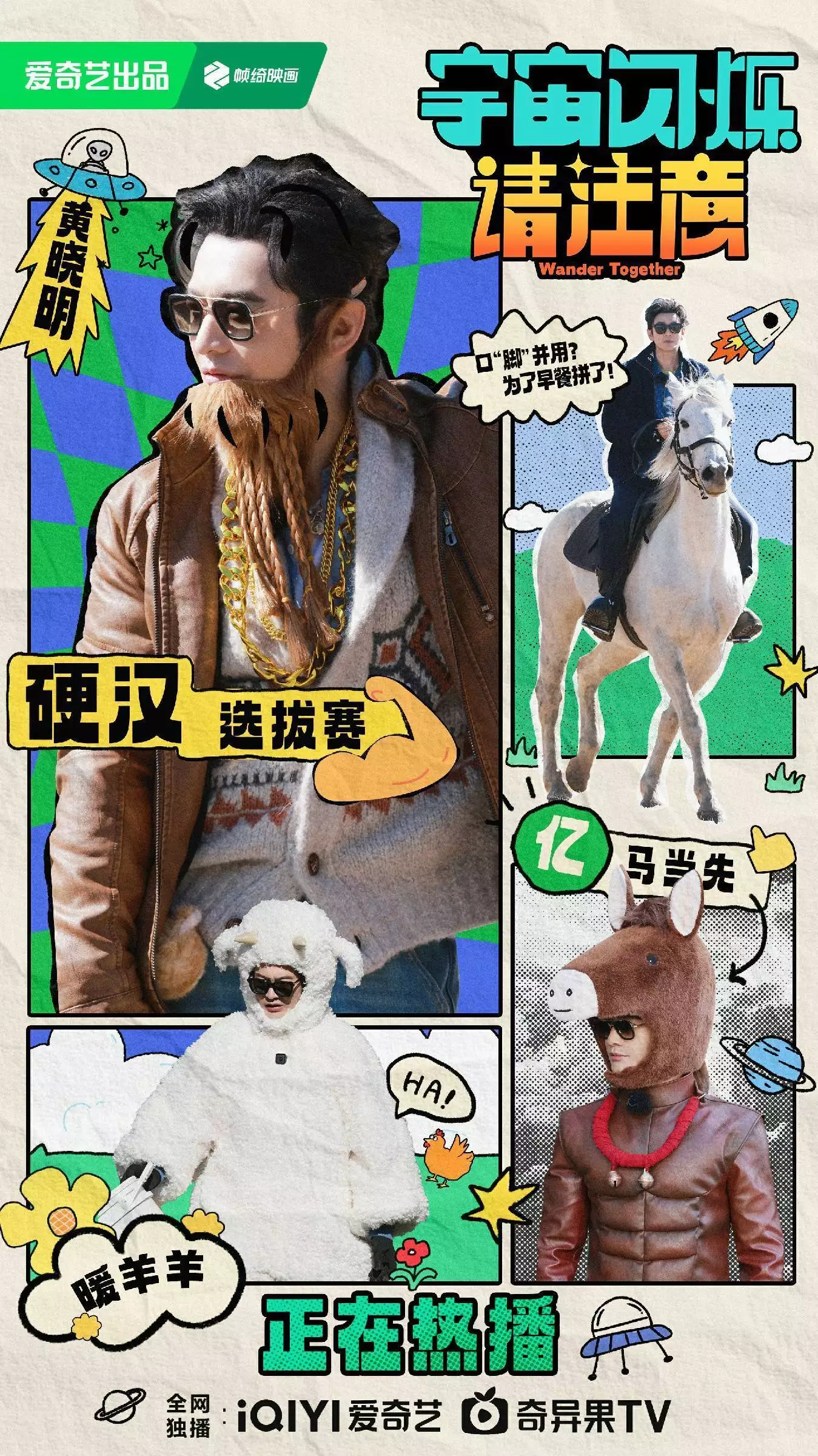 最新两期《宇宙闪烁请注意》cosplay环节,黄晓明毫不犹豫地穿上毛茸茸的羊装,与其他成员一起完成搞怪任务,“包袱”碎了一地,在赢早餐券环节中,黄晓明零帧起“脚”,重新定义“用餐礼仪”。这种“无所顾忌”的参与感,让他迅速成为团队中不可或缺的“先疯”队长。