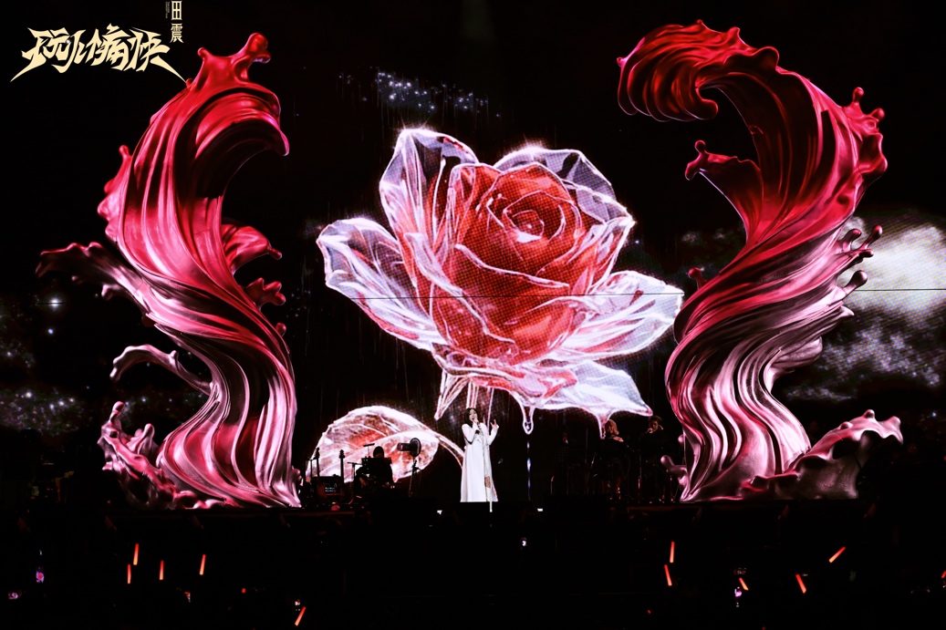 舞美设计:由V90 视觉操刀,运用裸眼3D、全息投影等前沿技术,将《HI 呀》的重金属工业风、《月牙泉》的沙漠甘泉、《铿锵玫瑰》的狂野不羁在舞台上极致还原,打造极具冲击力的视觉盛宴。