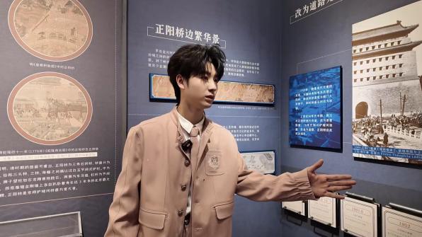 在讲解老师的引导下,黄誉博重点探访了展厅内的古桥模型与相关历史陈列,揭开正阳桥、金水桥、万宁桥及天桥的过往今生:正阳桥,位于北京市东城区正阳门南侧,横跨护城河,原为北京中轴线上重要的石桥之一;金水桥由内、外金水桥两部分构成,分别位于内、外金水河之上,内金水桥系五座拱券式汉白玉石桥,外金水桥系七座拱券式汉白玉石桥;万宁桥作为北京中轴线上最古老且仍在通行的桥梁,兼具桥闸双重功能,镇水兽与下方"至元四年九月"的刻字见证岁月变迁,而"万人空巷看洗象"的典故更添历史趣味;天桥则在“天子祭祀必经之桥”与“市井文化之地”的双重身份中,见证了从文人墨客雅集到“天桥八大怪”杂耍云集的变迁。直播中,黄誉博还详细了解了古桥的修复历程与考古发现,如正阳桥经两个阶段考古挖掘工作重现真容,万宁桥则通过1999年起的大规模修复焕发新生,让观众感受到文物保护与文化传承的重要意义。