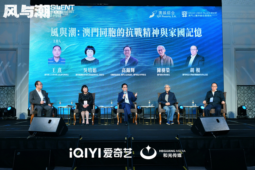 在“风与潮:澳门同胞的抗争精神与家国记忆”主题座谈会上,澳门理工大学中西文化研究所所长王熹先生、澳门镜湖慈善会秘书长吴培娟女士、澳门培正中学校长高锦辉博士、澳门历史学会会长陈树荣先生、澳门科技大学两岸关系研究中心主任胡根先生等围绕澳门抗战历史的独特价值、“孤岛”时期澳门同胞的抗争实践、爱国精神的当代传承等议题展开深度对话。吴培娟女士援引柯麟先生“以有限生命投身无限国家繁荣建设”的信念,彰显先辈以身许国的赤诚情怀与担当精神。高锦辉先生追忆何贤先生为澳门培正中学撕毁欠款签单的义举,尽显其倾囊助学、心系澳门教育发展的仁厚风范。陈树荣先生讲述何贤先生于粮荒时斡旋日方运粮济民等事迹,彰示其心系同胞、胸怀家国的大义。胡根先生指出抗战时期澳门虽名义中立,实则民众坚守家国正义立场,希望借《风与潮》播出唤起大众对澳门历史的关注。王熹先生以 “孤岛不孤、意志高扬” 概括澳门抗战贡献,强调其始终与祖国休戚与共,盼这段壮阔历史与精神永续流淌在民族血脉之中。现场嘉宾们的深度剖析,让在场观众对澳门抗战历史有了更立体的认知,对“爱国爱澳”的精神理解也愈发深刻。