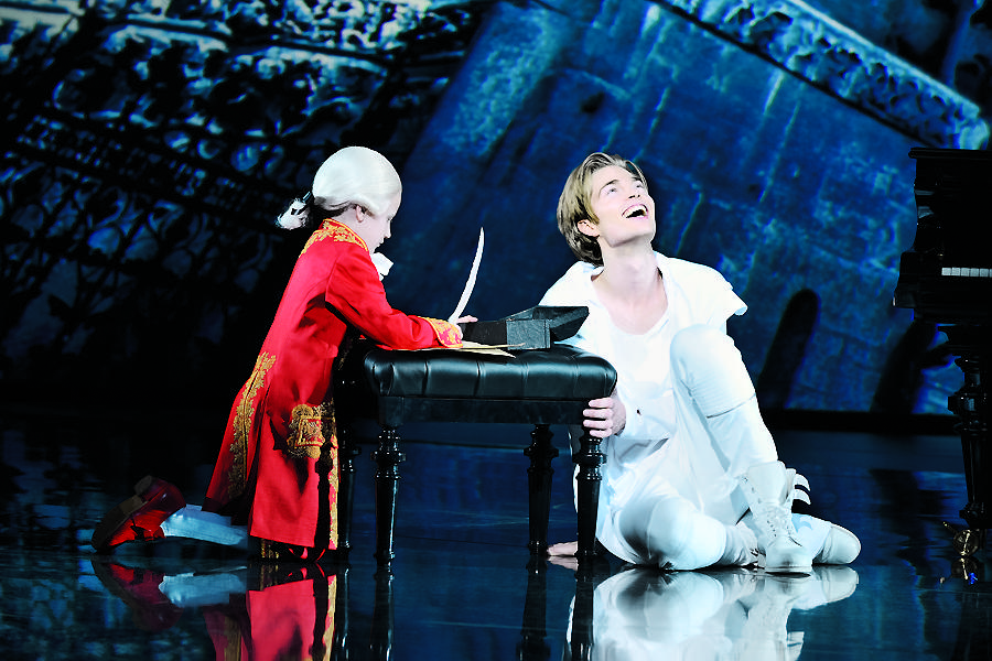 坊间近年来出了很多写名人的戏,不少当代英雄和历史人物你方唱罢我登场。大家感慨真人难写,常会顾此失彼,不容易让熟悉其原型的各方面人士都满意——至少认可其真实性。在这个语境中看《莫扎特!》,编剧兼作词米歇尔·昆策笔下的辩证主题及其呈现方式的巧思实在令人叹为观止。我们看到了多少个莫扎特?除了瓷娃娃阿玛德、少年和成年莫扎特,还有老莫扎特镜像中的不孝子、总主教镜像中的刺头员工、男爵夫人眼里恨铁不成钢的年轻人、妻子眼里的爱人、岳母囊中的猎物、赌友最爱的冤大头……所有这一切,都被昆策张弛有致地编织到悬念迭起还有那么多歌的剧情中。