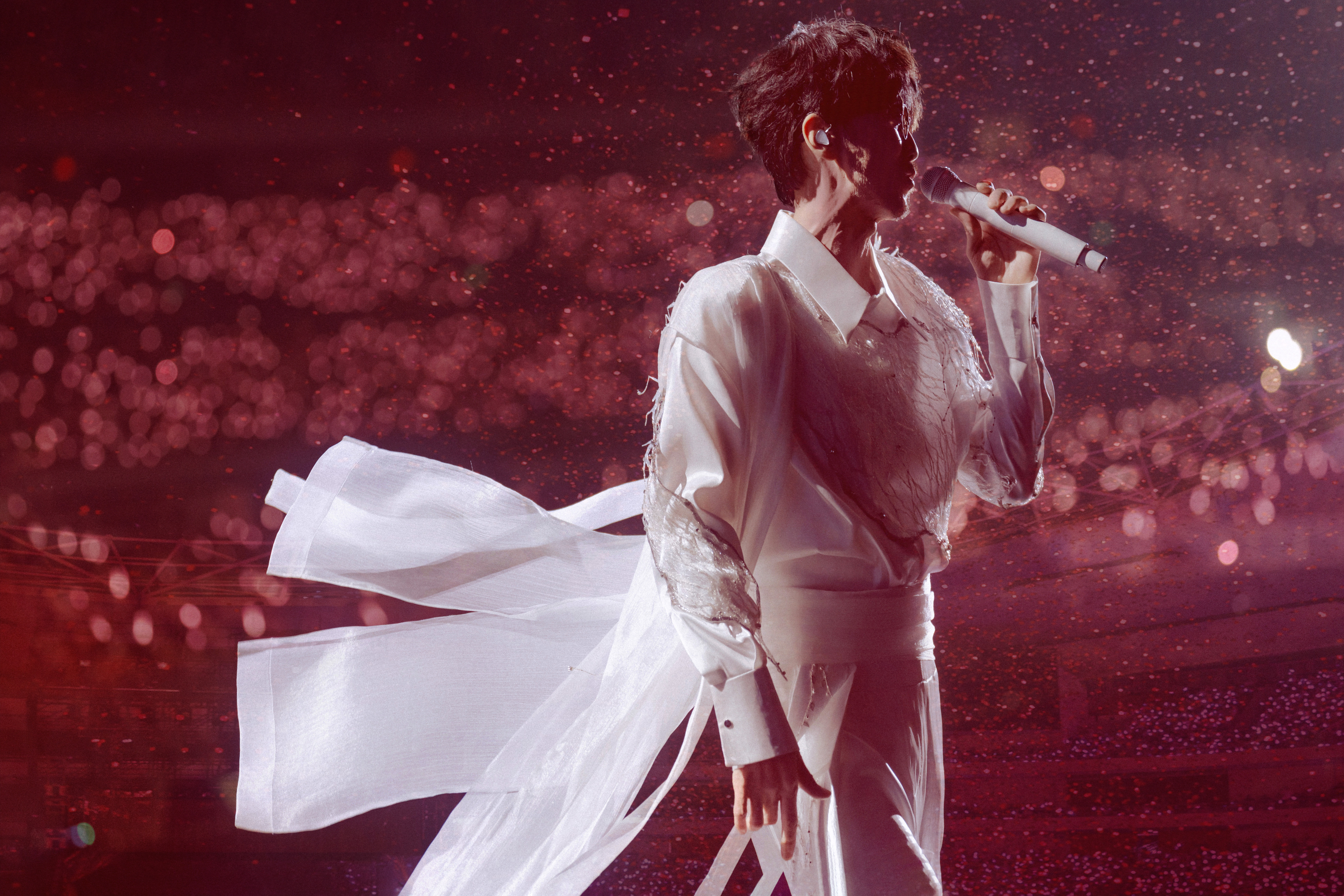 南宁站现场,还下起了一场深情缱绻的《北极雪》。这首歌由周传雄作曲,于1998年首次发行,收录于陈慧琳专辑《爱我不爱》中,成为一首经久不衰的对唱情歌。当晚,周传雄完整演绎原汁原味的《北极雪》,以富有磁性的深情声线,还原歌词中的空灵纯净的浪漫氛围。