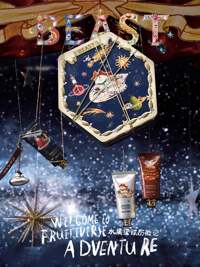 近日,BEAST野兽派正式拉开2025圣诞季帷幕,品牌经典IP雪怪以星际船长新形象惊喜回归,携手好朋友们开启“水果星球历险记”全新篇章,上演一场华丽可爱、充满圣诞节日氛围的冒险故事。系列视觉以闪亮宝石与浩瀚宇宙为创意灵感,邀请大家一同探索充满香气与惊喜的神秘宝藏。